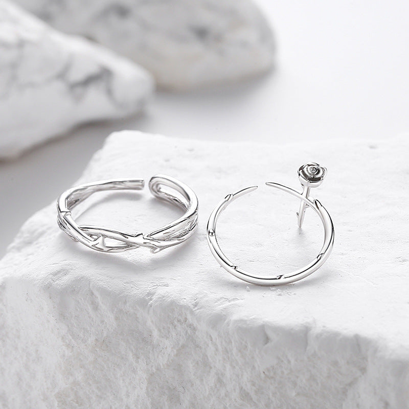 Branch and Rose Romantic Couple Rings Set