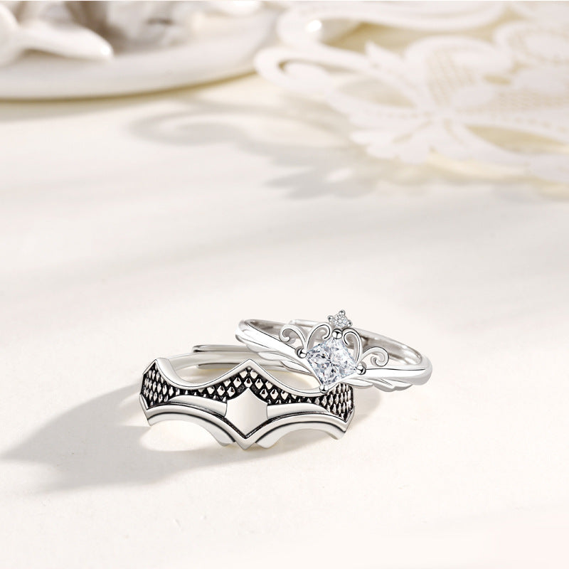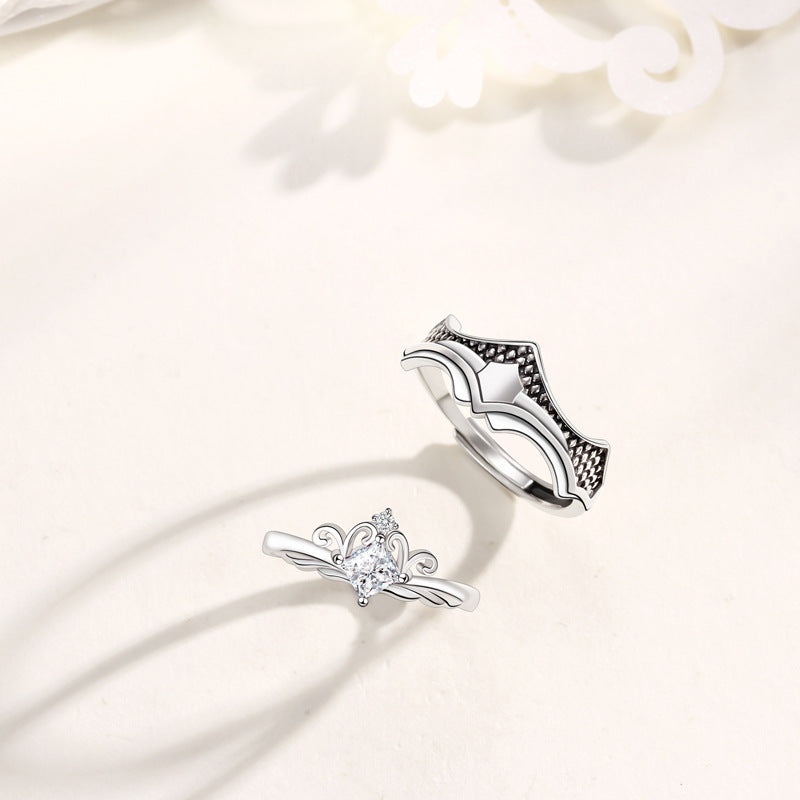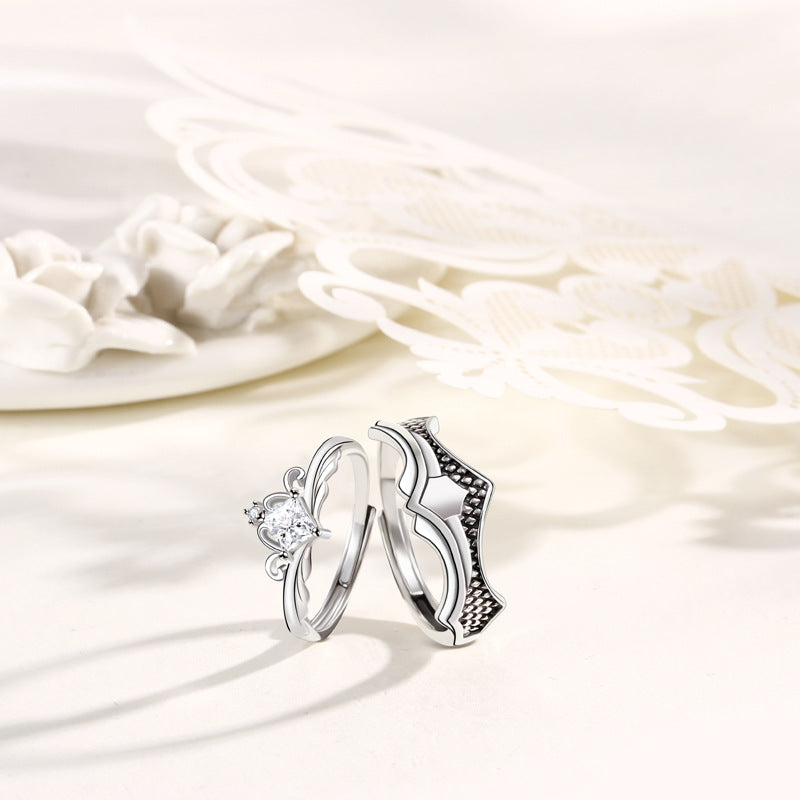 Custom Engraved Crown Couple Rings Set