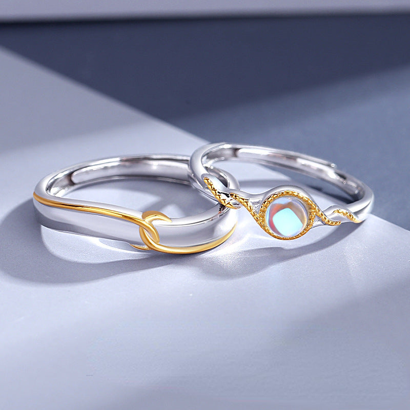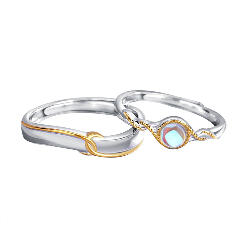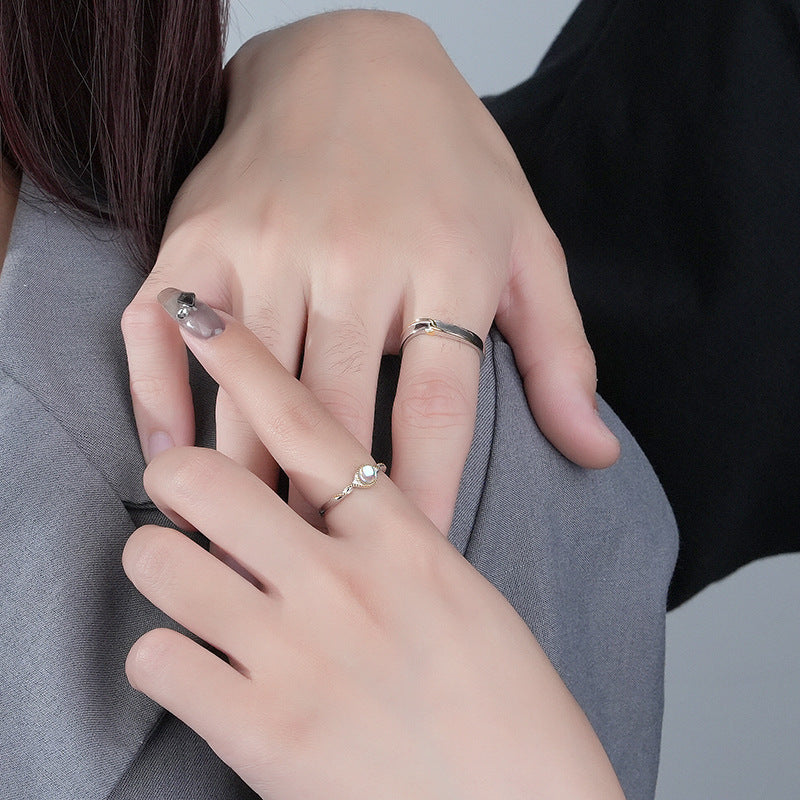 Custom Moonstone Couple Wedding Rings