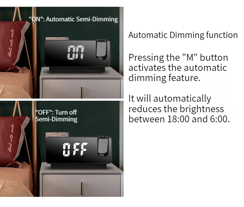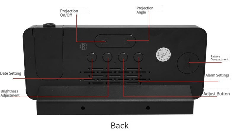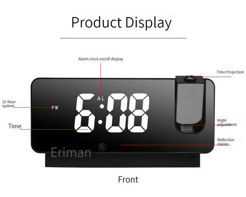 • LED Time Projection: Clear projection, adjustable angle, button switch (optimal projection distance within 3 meters).