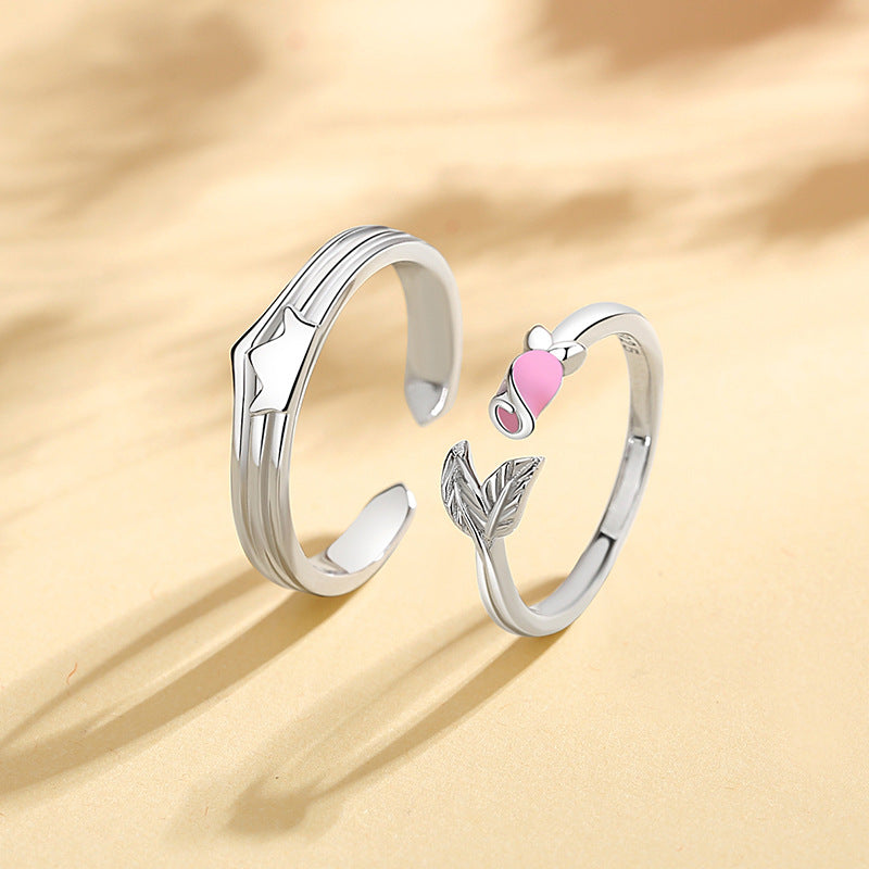Engravable Crown and Rose Promise Rings Set for two