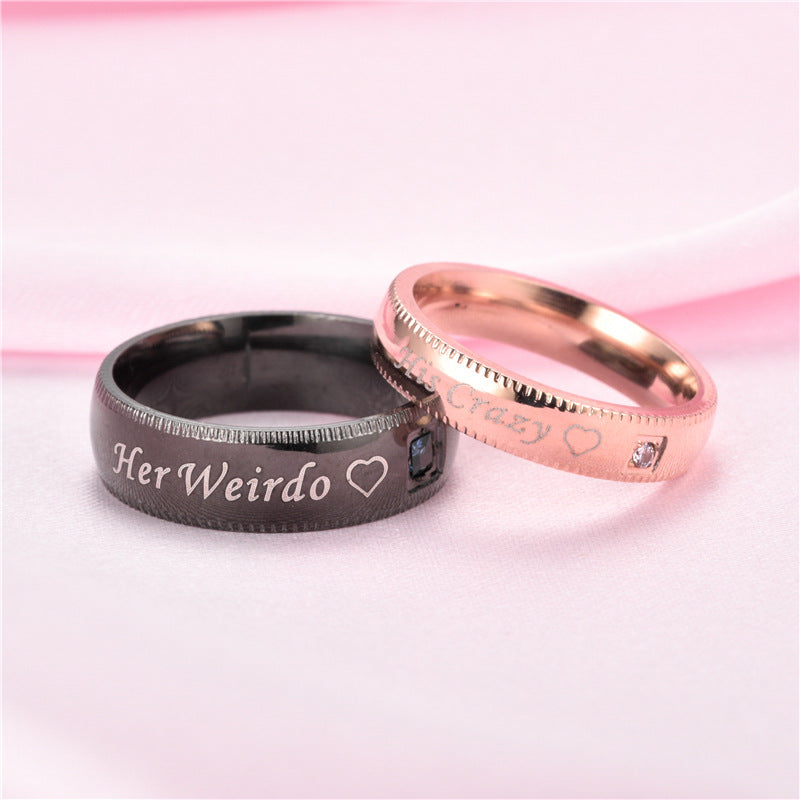Engravable Her Weirdo His Crazy Matching Rings Set