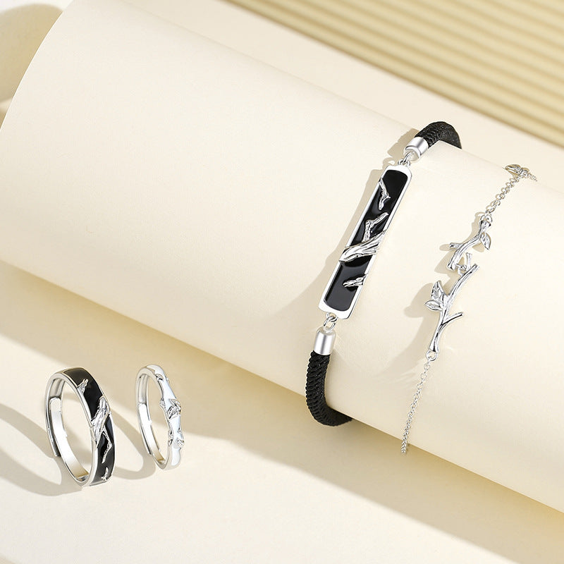 This sophisticated custom engravable romantic couple set, crafted with gold plated sterling silver, is a perfect gift to express your commitment and love, with adjustable sizes for a perfect fit which makes it a perfect promise and wedding jewelry gift. Show your everlasting love and commitment with this beautiful set.