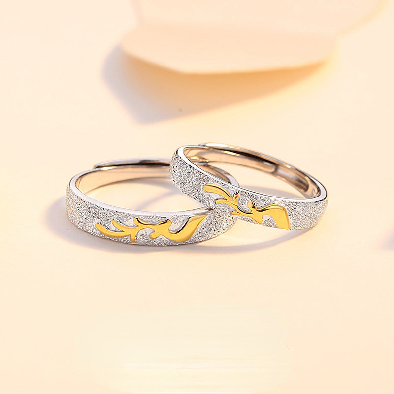 Kissing Deer Romantic Couple Rings Set