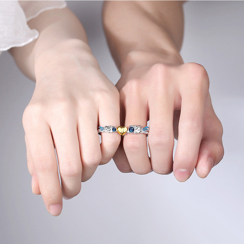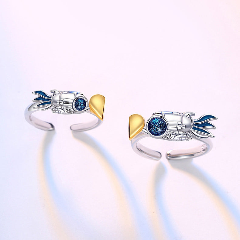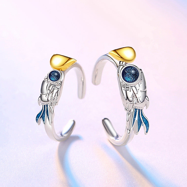 Magnetic Hearts Connecting Spaceman Couple Rings Set