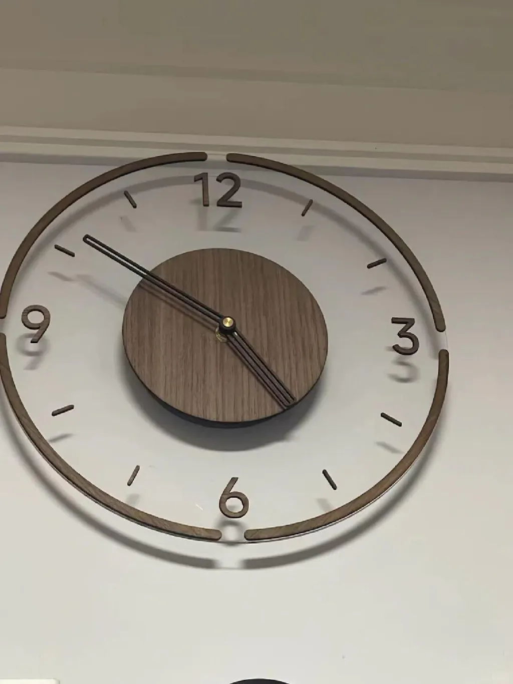 The Nordic solid wood silent wall clock is truly a beautiful piece. The transparent mirror dial is simple and elegant, and it pairs perfectly with the Nordic-style furniture in our new home. The wooden frame of the clock is also very delicate and well-made, and it arrived safely and soundly, packaged in a foam board.