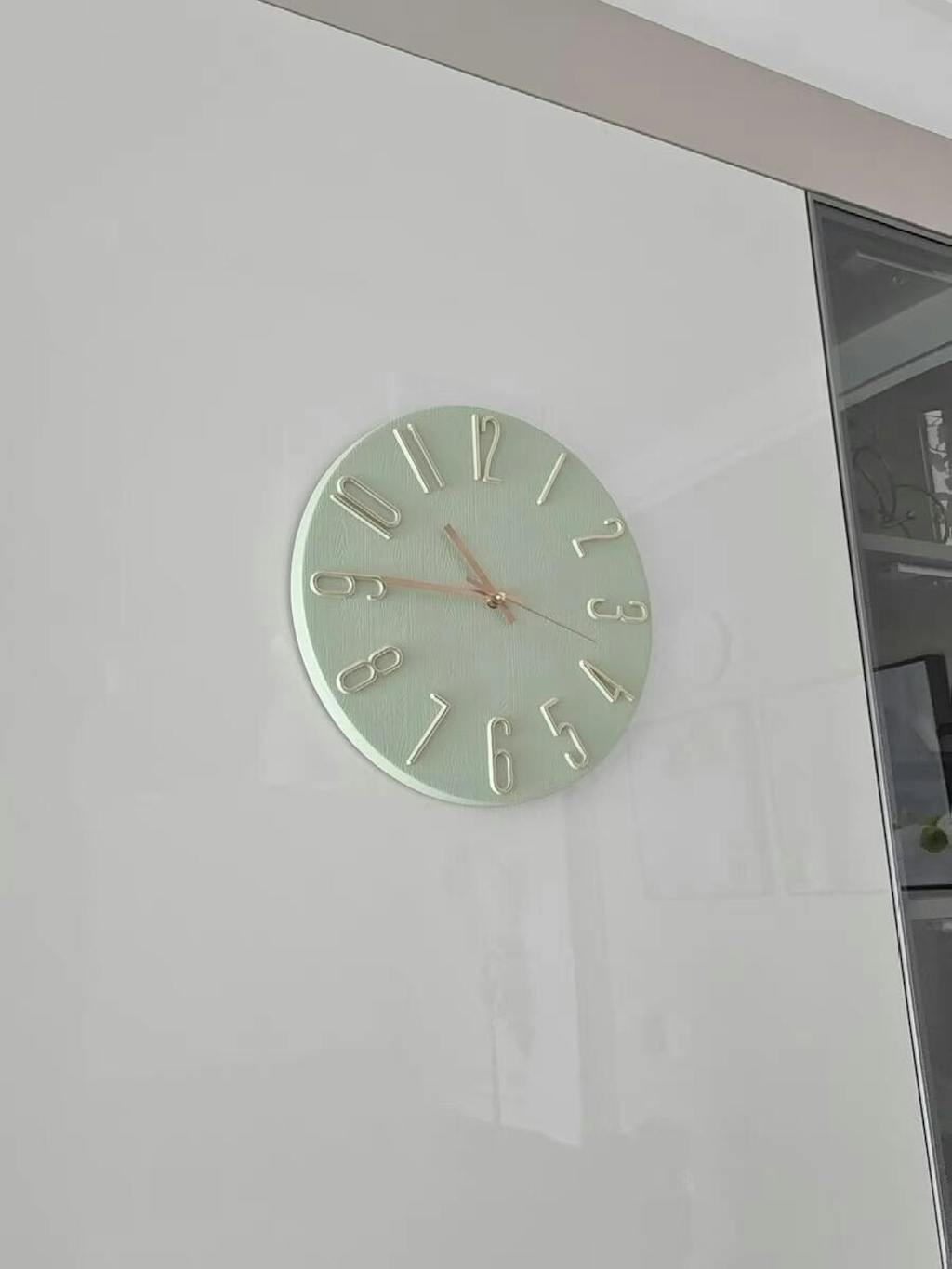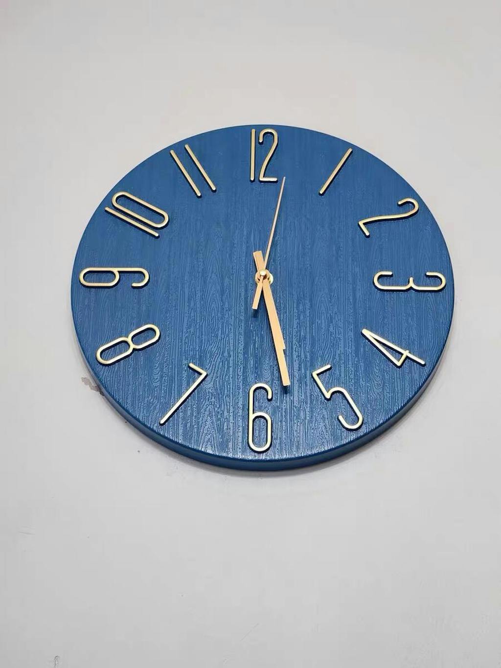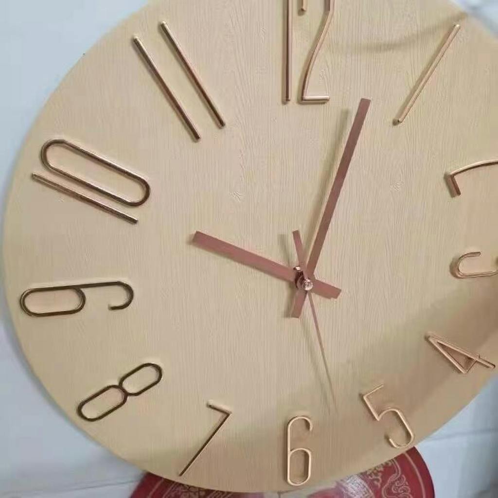 I had been searching for a simple, basic, and modern-looking wall clock for my office for a while. I visited a few stores and finally found this one. The bold, large gold metallic numbers on the wood background allow me to easily read the time from a distance. It perfectly matches my contemporary office design.