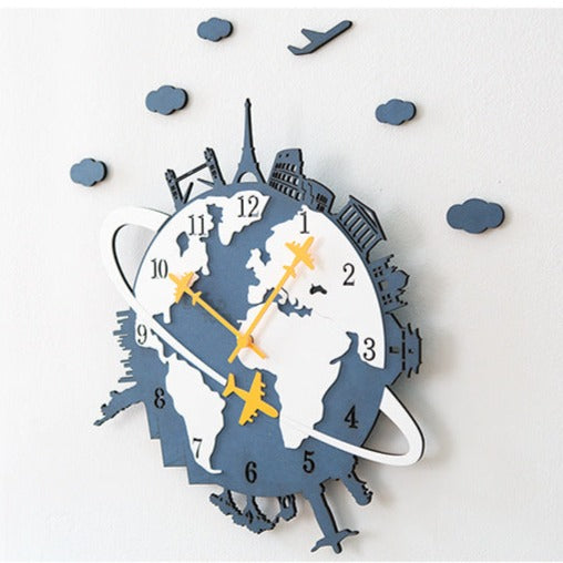 World Map Wall Clock for Kids Bedroom